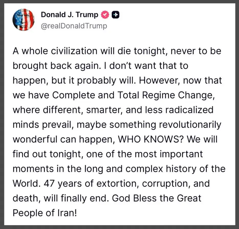 When President Trump threatened that “a whole civilization will die tonight,” that kind of language demands a response from the church. Not a partisan one. Not a political one. A theological one. Because the Christian desire is not the destruction of peoples or civilizations. The Christian desire is truth, justice, restraint, peace where it can be pursued, and moral clarity under Christ. Whatever one believes about the geopolitical situation with Iran, whatever one believes about the necessity of force or the legitimacy of deterrence, the rhetoric of civilizational annihilation is not the language of someone formed by the teaching of Jesus. And Christians who have spent recent years affirming this president’s broader direction cannot simply look away when his words cross a line that the gospel will not cross with him.